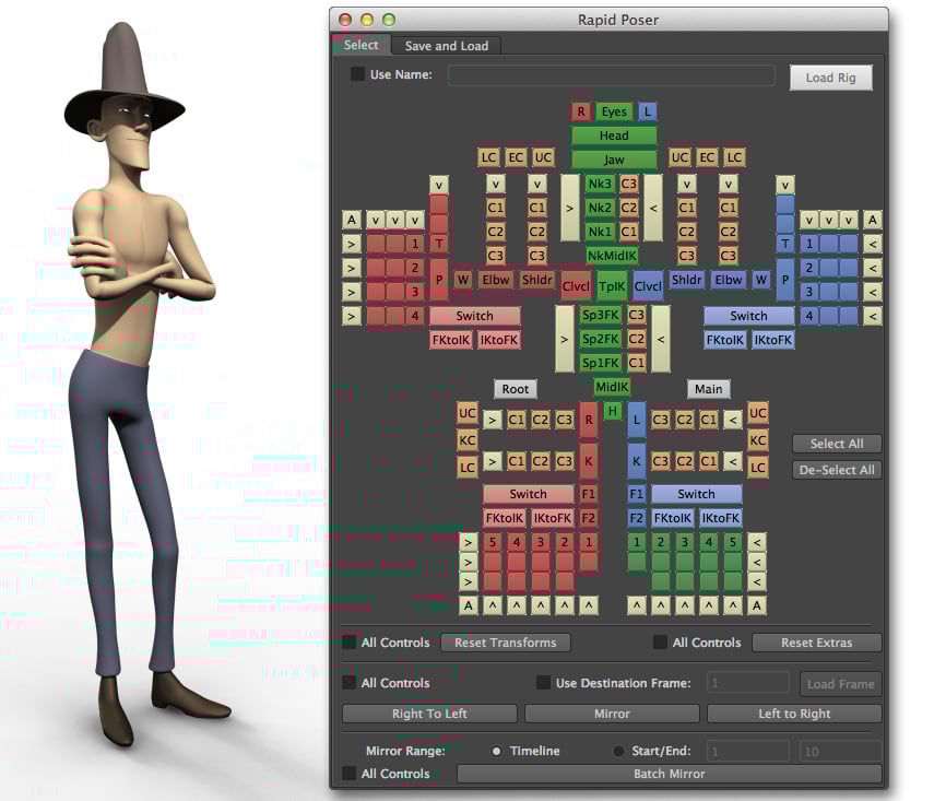 -If you have only one character, the best way to use this interface is to either type in the name of the rig at the top, or select any control on the rig and hit "Load"